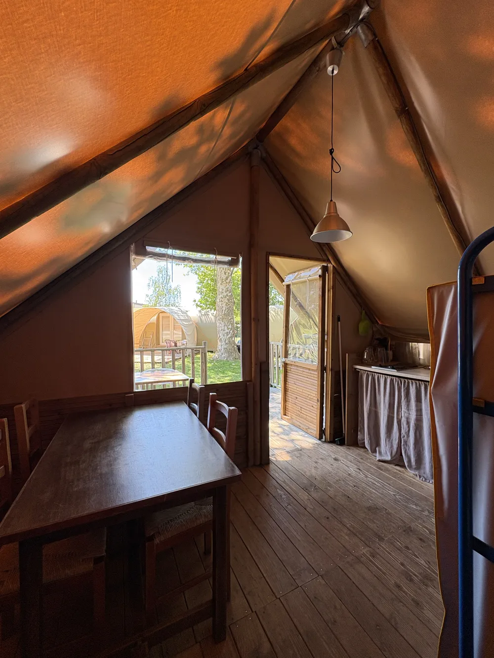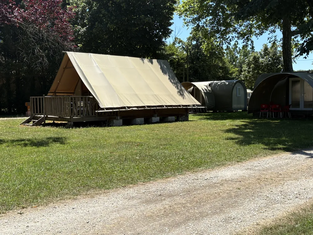 La tente AMAZONE du Camping de l’Arquebuse à Auxonne est une structure originale et écologique, pensée pour les amoureux de la nature et du plein air.