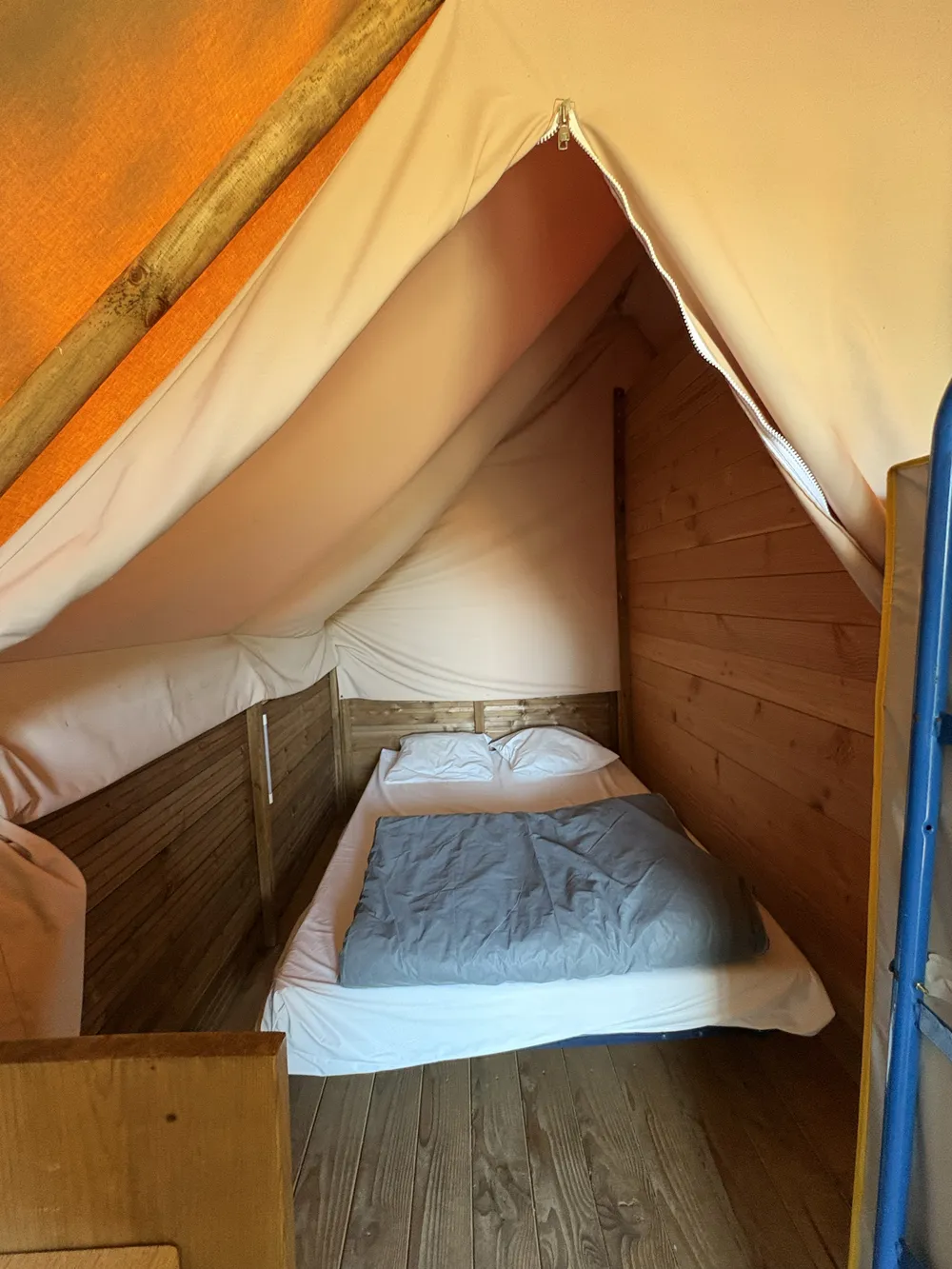 Avec sa superficie de 20 m², elle combine le charme du camping traditionnel et le confort d’un hébergement aménagé, idéal pour une famille de 4 à 5 personnes.