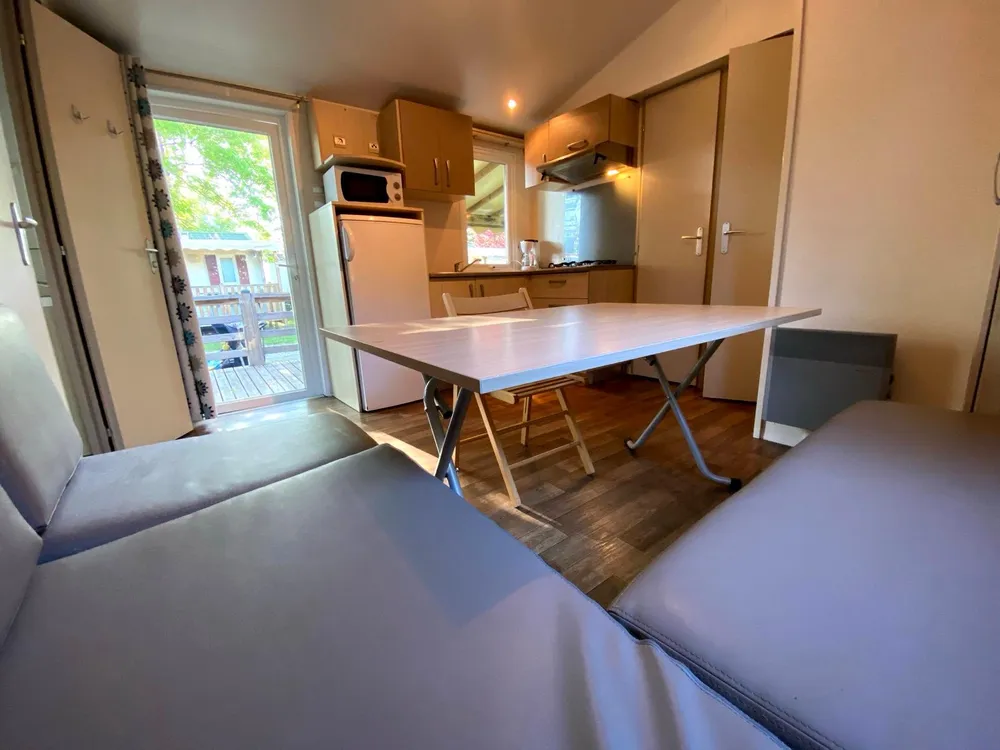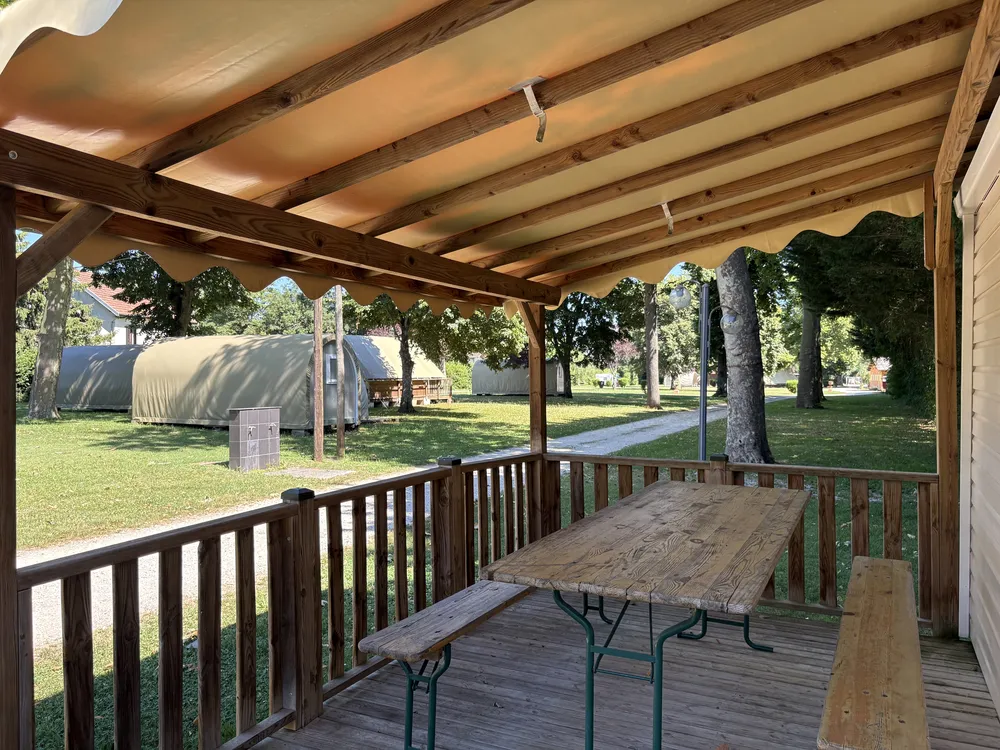 Le mobil-home MERCURE vous permet de partager des moments de détente sur la terrasse en bois, de savourer vos repas à l’extérieur ou de vous reposer après une journée de découverte.